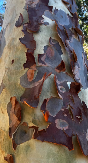 This tree,bravely shedding its bark to reveal its soft inner self gave us a wonderful example of how nature shows us the way.